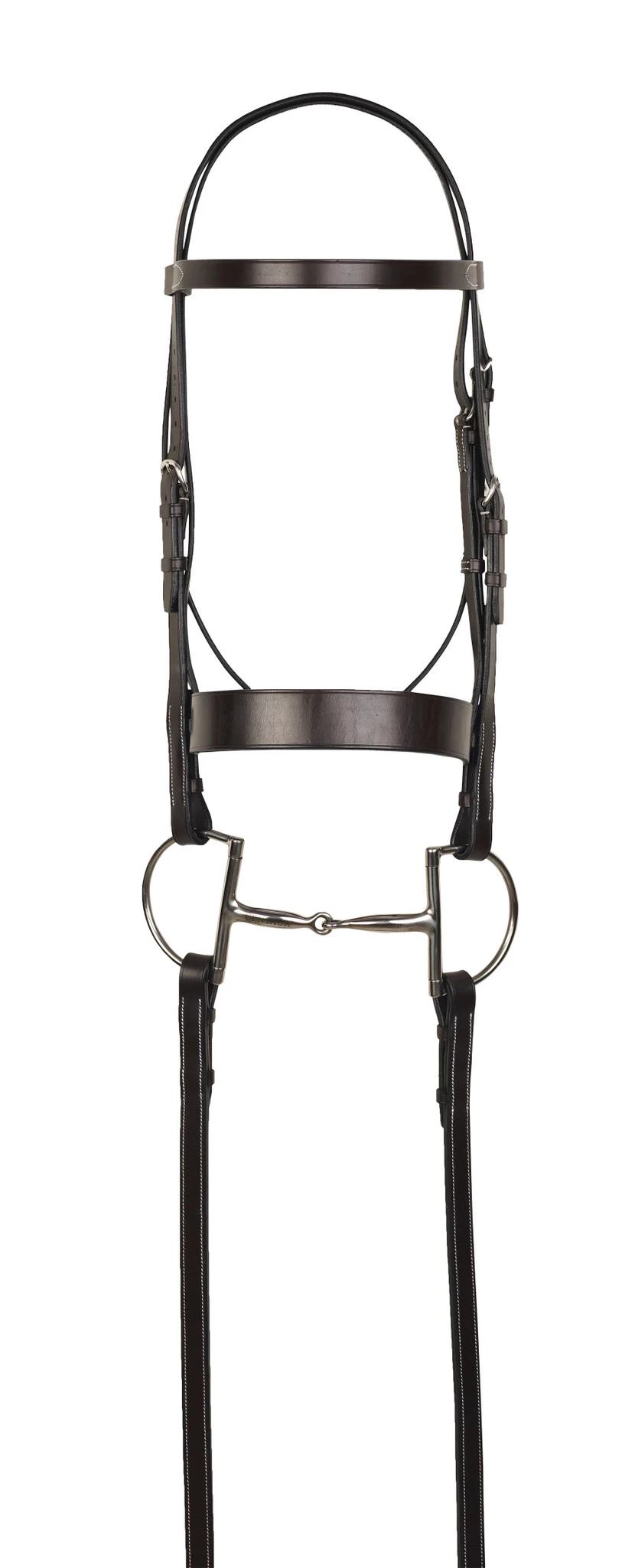 Classic solid leather hunt bridle with 3/4″ wide laced reins. Made of carefully picked top grain cowhide leather.