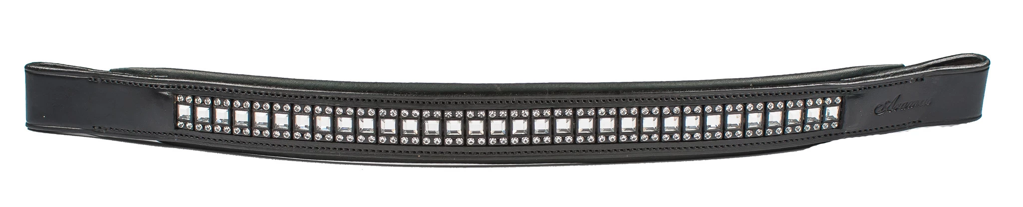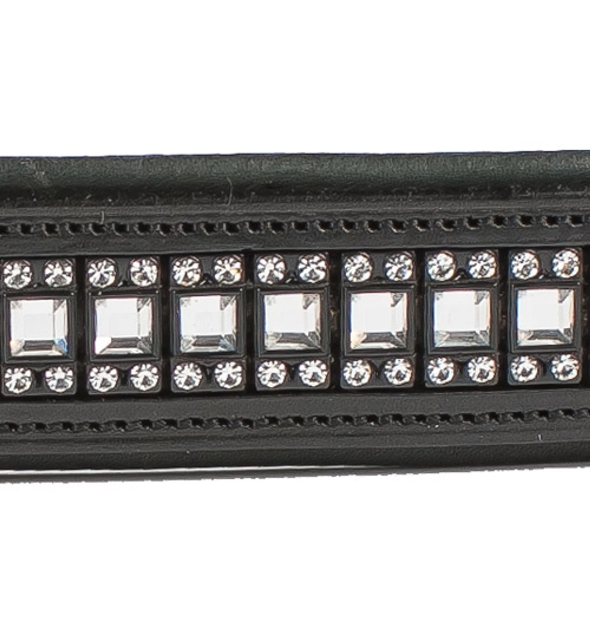 Straight padded 1″ wide browband inset with clear round and square shaped clear genuine Swarovski crystals. Made of carefully picked top grain cowhide leather.