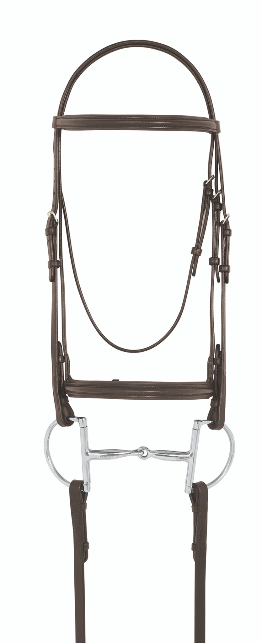 Best value for the money in a plain raised padded snaffle Bridle. With 5/8″ laced reins.