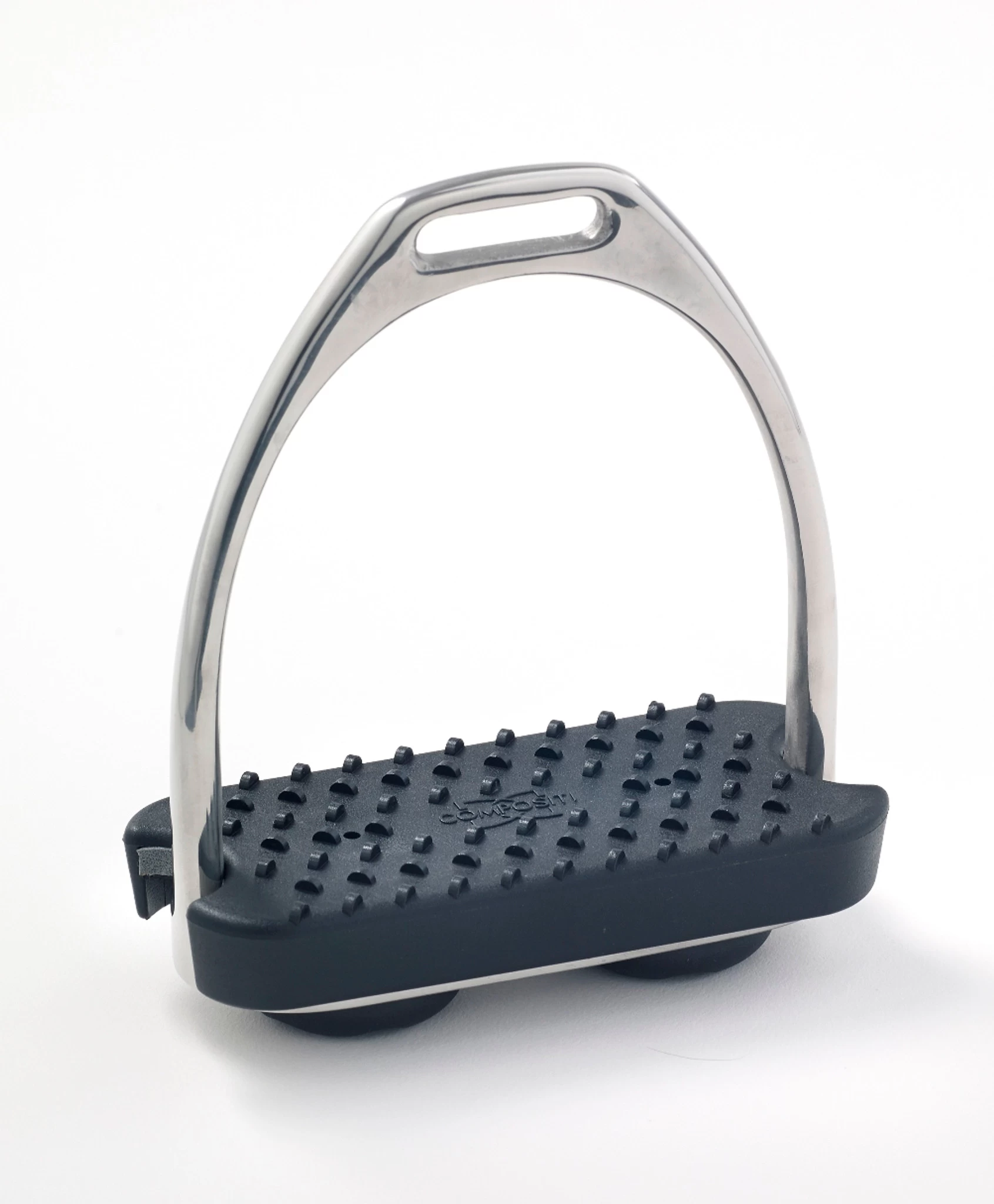 The Compositi Spikes Stirrup Treads are adjustable to fit most adult irons. Enjoy the benefits of large treads for stability, spiked surface for added grip in all weather conditions. Shock absorbing cushioning softens impact and relieves tension in the knees and ankles. Washable, hi-tech polymer keeps its shape at temperatures down to -30 Celsius.