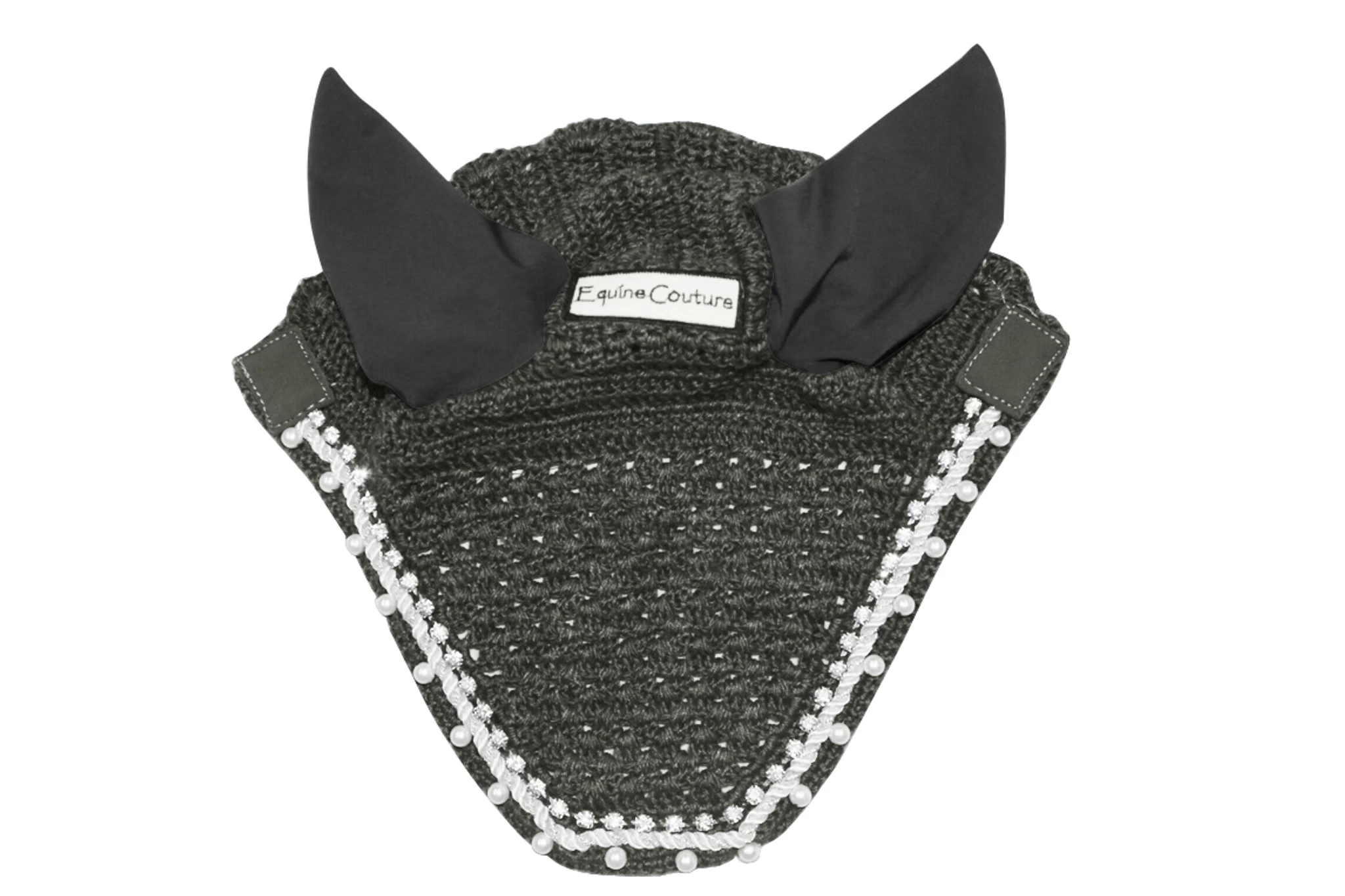 The Fly Bonnet with Pearls and Crystals by Equine Couture is the perfect sparkly touch for riders who love all the bling! Ear bonnets are a great choice to block flies around the ears in the hot summer time. Horses that are hyper-sensitive to sound will appreciate the muffling effect that bonnets provide, creating a more focused horse. The Spandex fabric allows for total ear rotation and freedom of movement. With a knit/crochet pattern, many holes allow for adequate air flow.