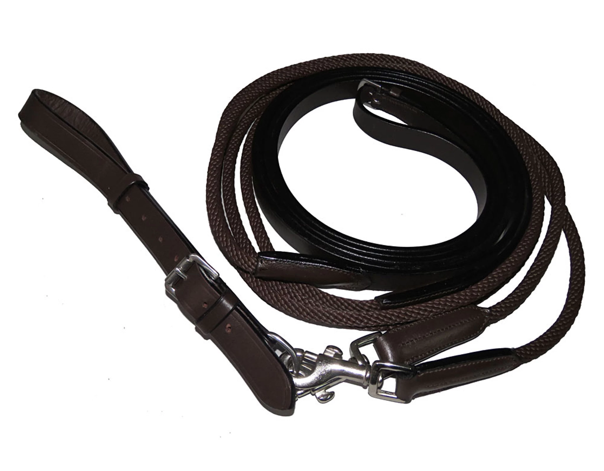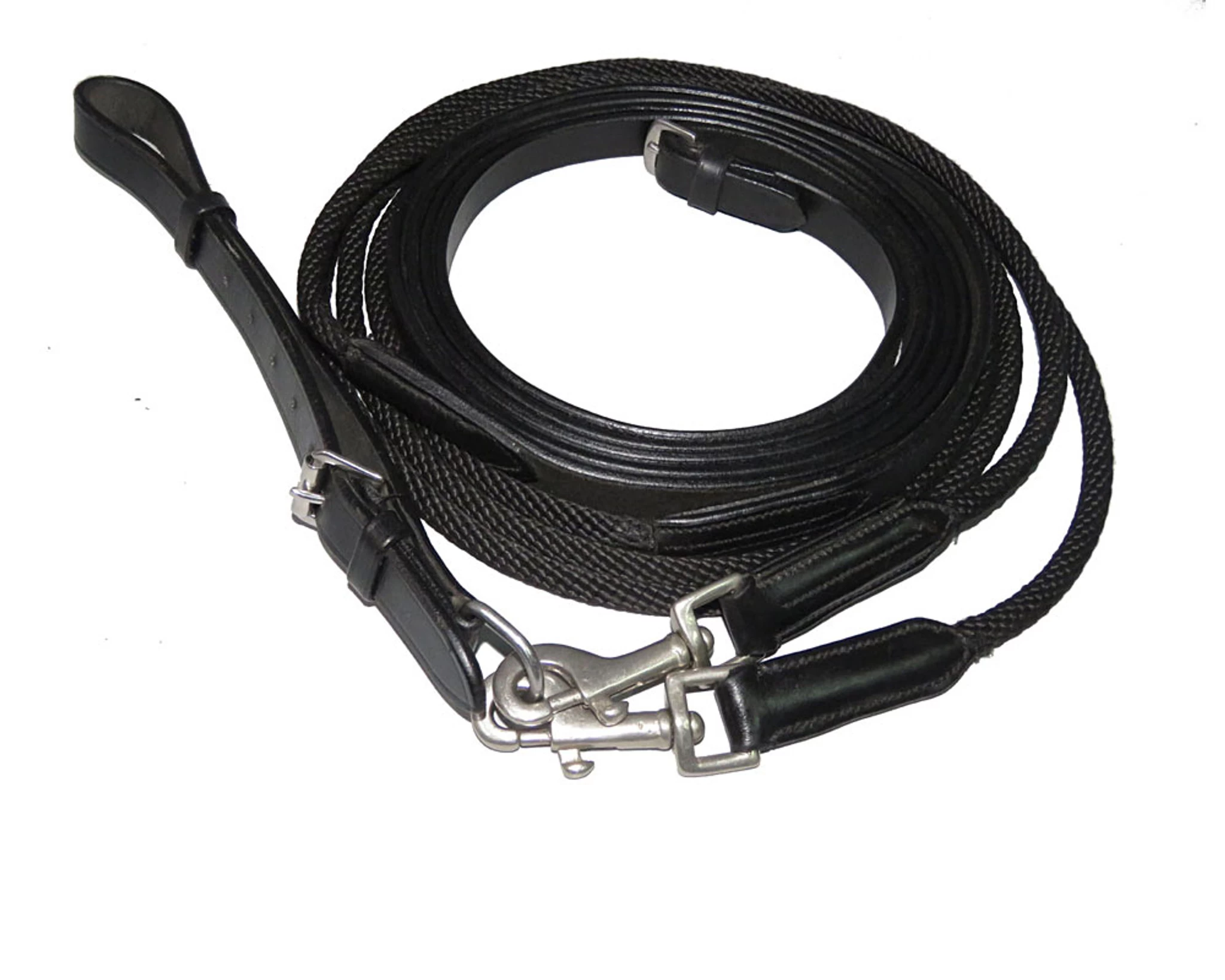 These Draw Reins include a round nylon material to glide through the bit rings without impediment. Made to encourage green horses to move forward in carriage, these draw reins apply gentle pressure at the bit. Our Henri de Rivel Draw Reins – Rounded Nylon/Leather Snap measure 108″ on each side and include a leather snap for quick attachment and removal without the hassle. Offered in several color options to match the rest of your tack. These quality draw reins feature stainless steel hardware for years of durability and are adjustable to fit multiple horses in the barn.