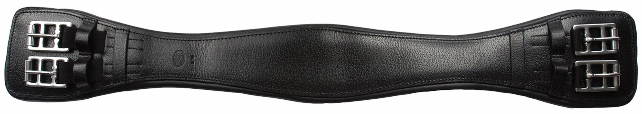 The Henri de Rivel Dressage Girth, made from imported leather, has a comfortable contoured cut and stainless steel roller buckles for easy adjustments. The durable elastic inset allows for a taut fit and and minimal gaping.