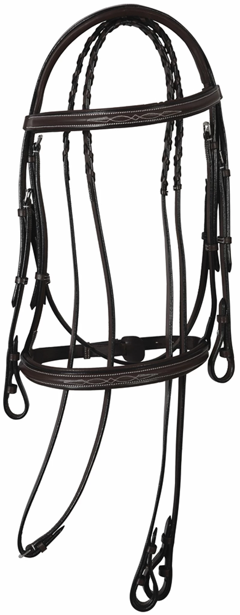 The HDR Pro Mono Crown Fancy Padded Bridle features a single crown piece and a padded, contoured headstall for the comfort of your horse or pony. This bridle offers superior quality leather at an unbeatable price.
