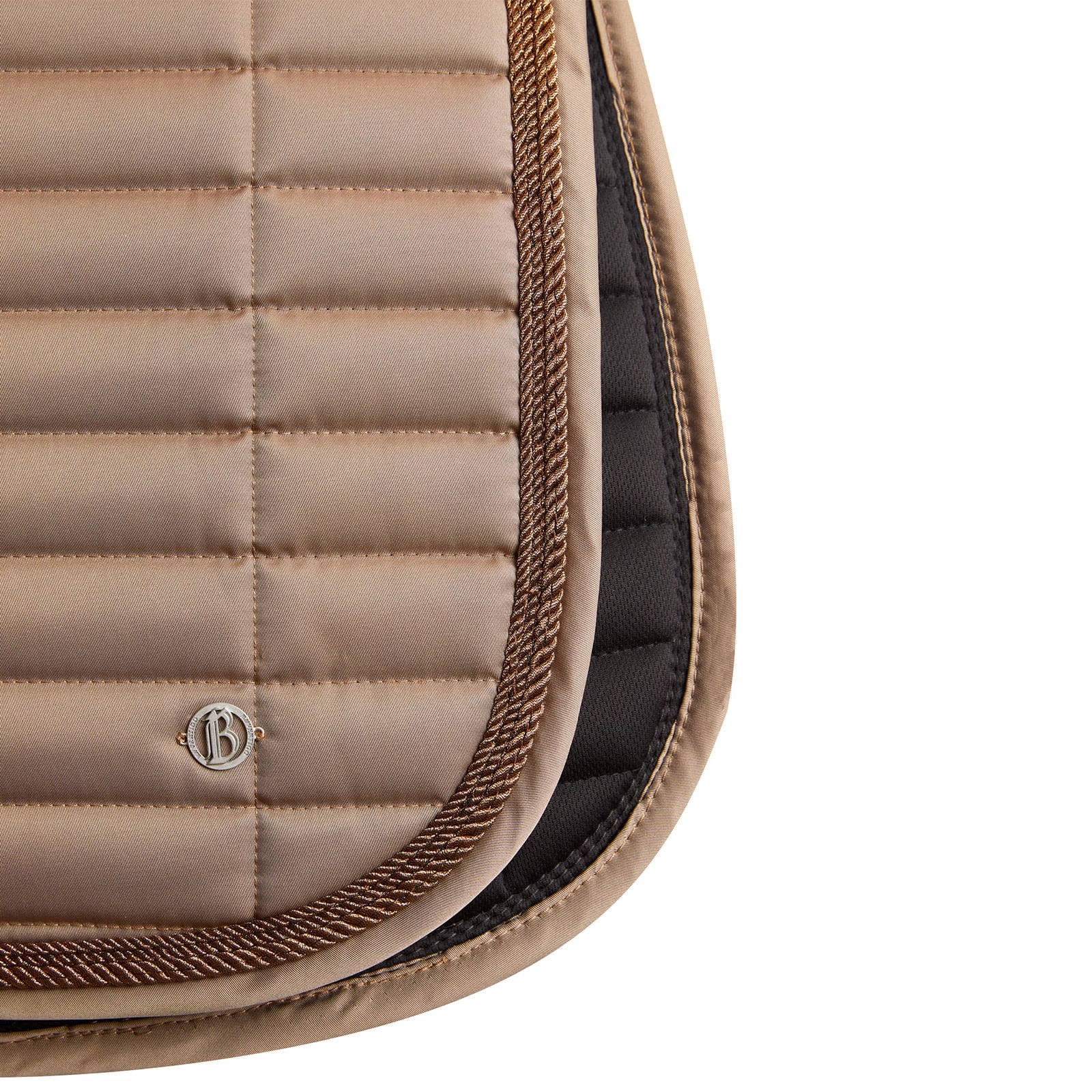 The B Vertigo Quinn saddle pad is made from high density material that perfectly cushions your movements. Quick-drying material wicks away any moisture. Rectangular quilting and three rows of cord around the edges make for a stunning look. The anatomically shaped spine brings a sporty touch. Pair this saddle pad with our B Vertigo Quinn ear net for a full look! Also available as dressage version.