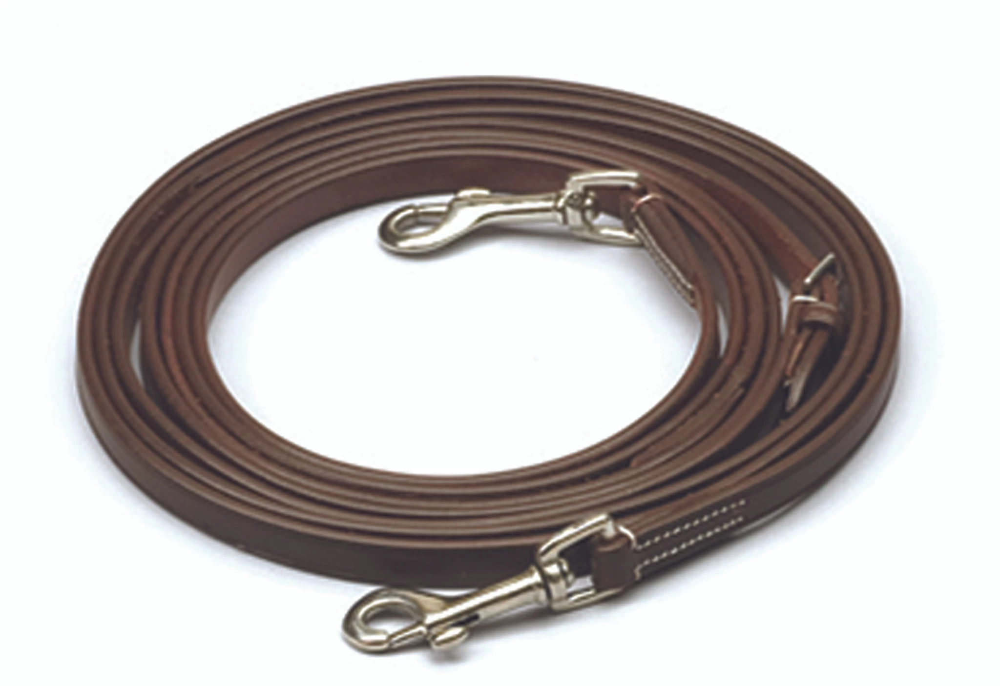 Professional quality leather draw reins with trigger snaps. Expertly crafted in England’s finest leather. 13 ft. total length (not including snaps). 1/2″ wide.