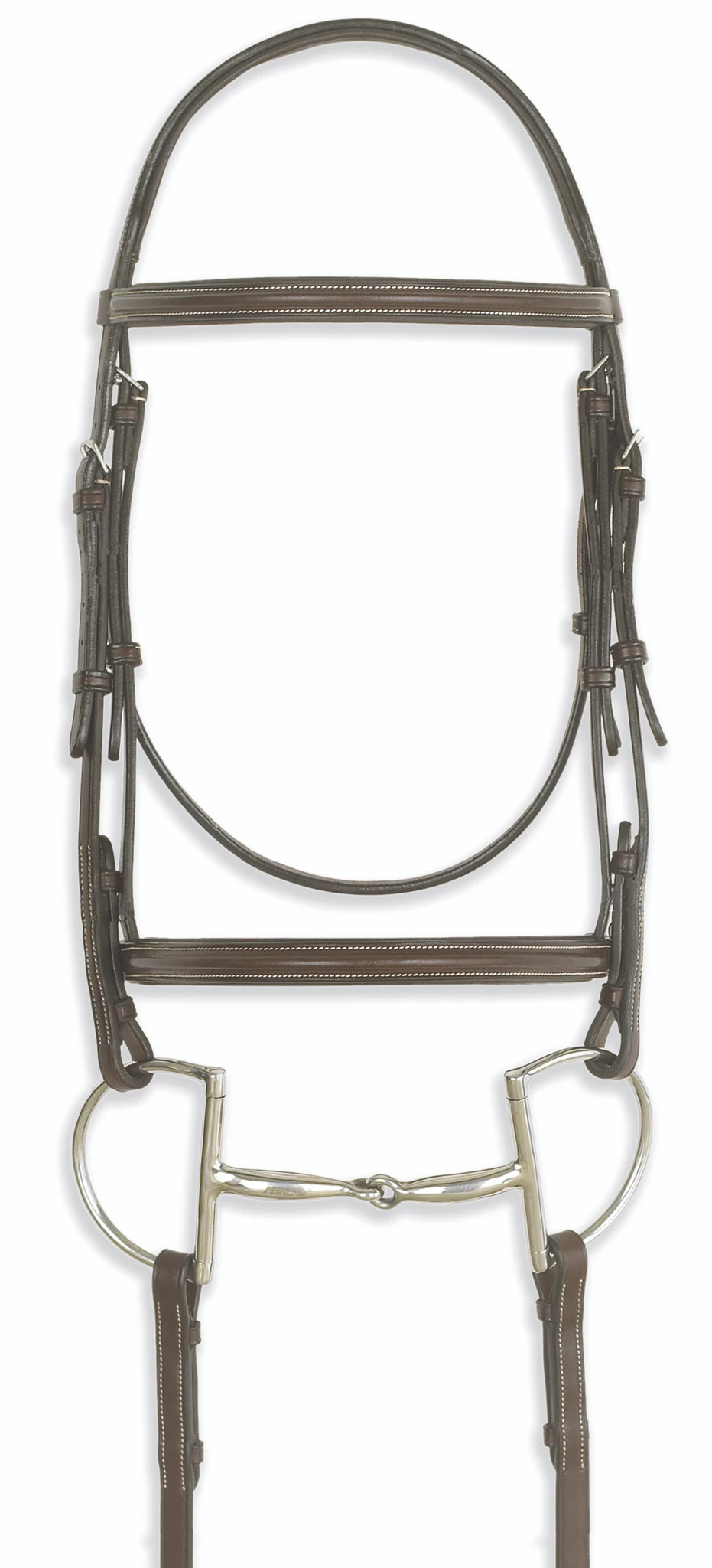 This Ovation plain, raised bridle is crafted of fine Argentine leather with a beeswax finish that allows the leather to absorb oil. Features 5/8″ padded browband, 7/8″ padded noseband, and 5/8″ x 54″ laced reins with hook stud ends.