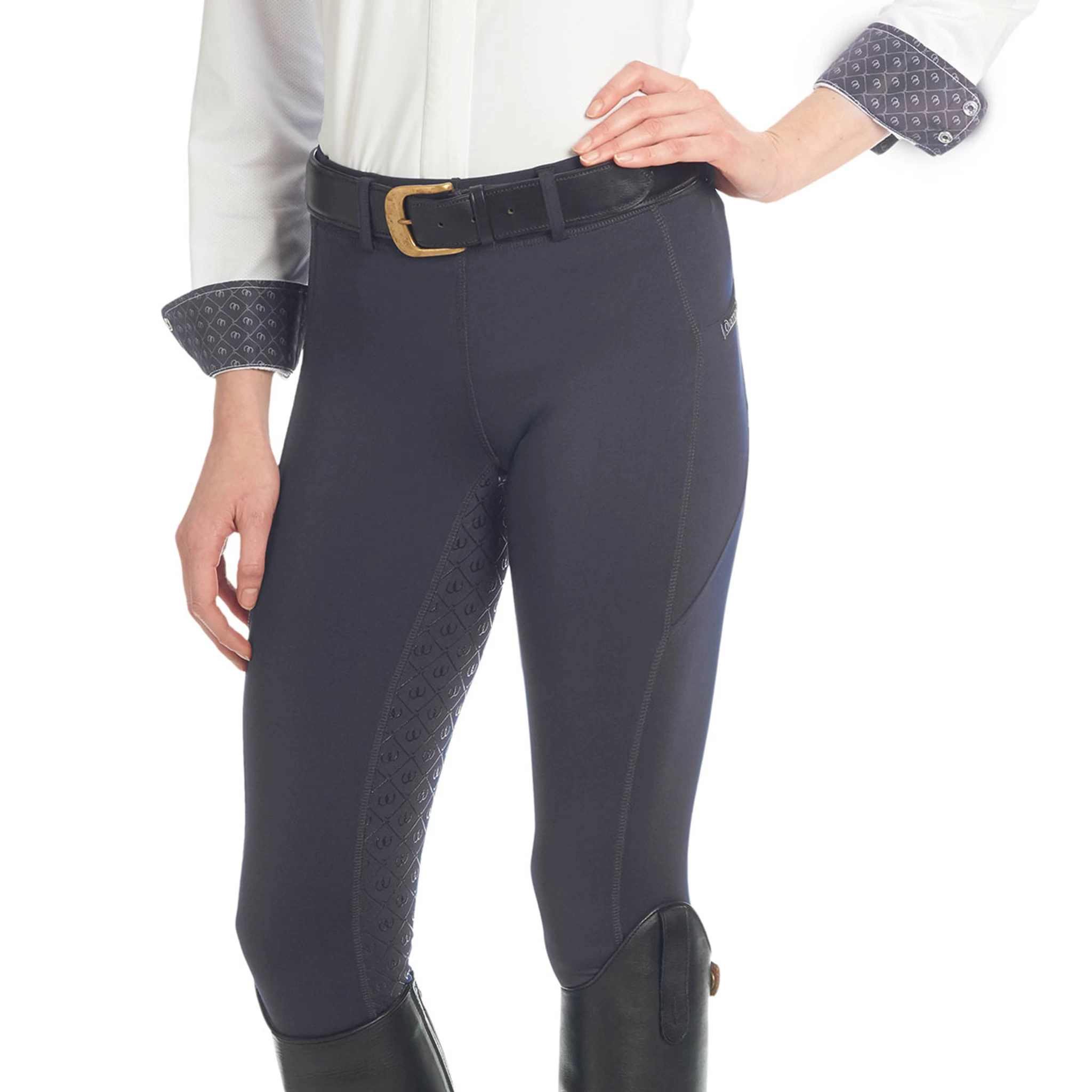Ovation’s new, innovative, pull on, full seat breech is tailored with Aerowick™ – an ultra-lightweight spun polyester spandex that is two times softer, three times stronger and wicks eight times faster than cotton. It has maximum motion 4 way stretch, long lasting shape retention and is stain, odor and microbial resistant. Includes belt loops, euro seat, Grip-Tec™ silicone full seat, and colorful spandex stretch bottoms.