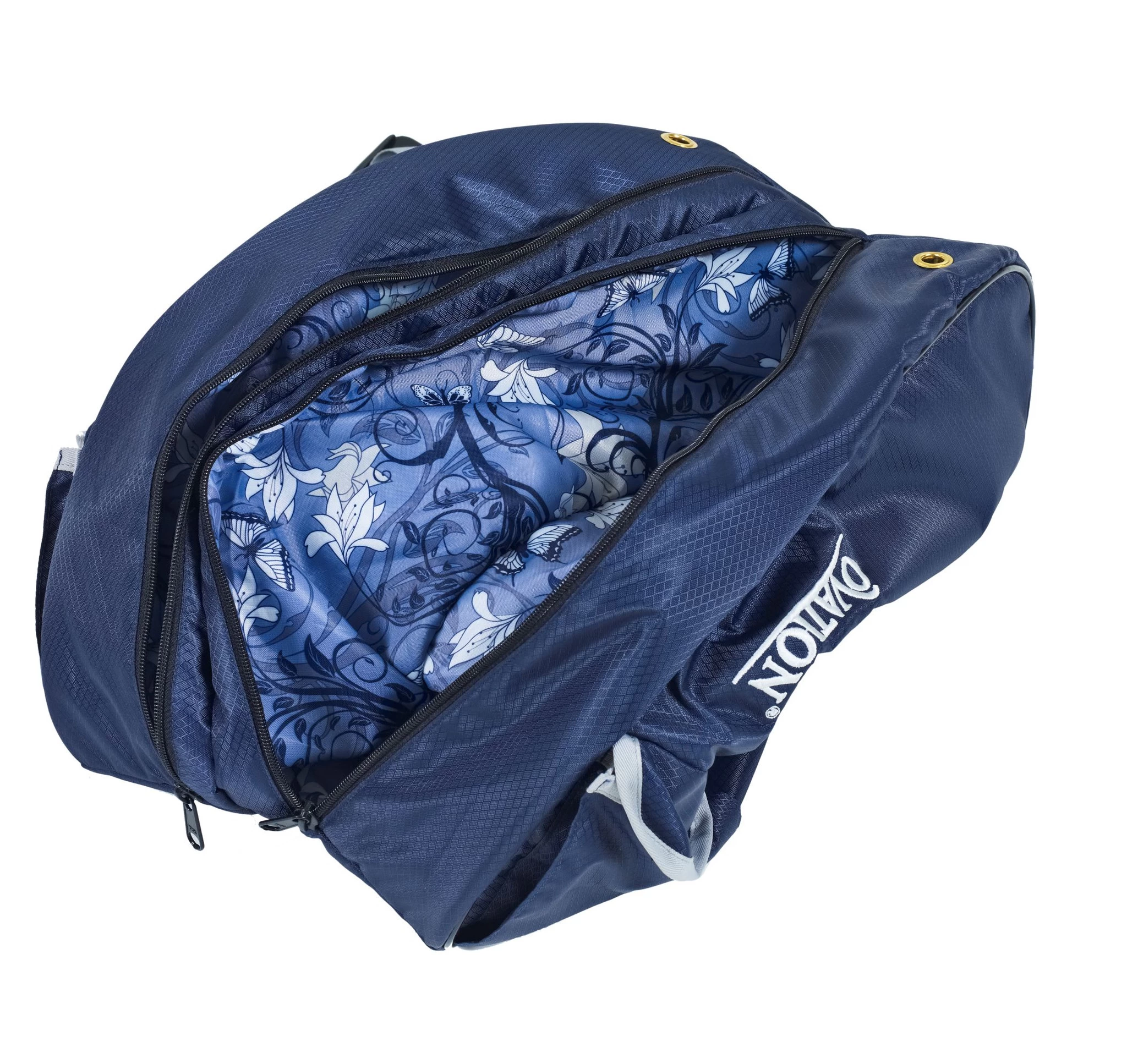 Ovation Tall Boot Bag – 1200 Denier waterproof-breathable tall boot bag with polyfil padding, Secret Garden designer print nylon lining, individual boot compartments, vents, outside pocket, carry handle strap, and removable adjustable shoulder strap.