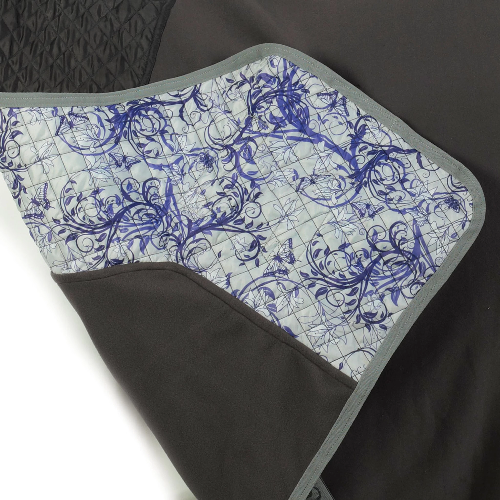 Ovation Turbo-Dry Cooler – with printed nylon shoulder lining and elegant quilted nylon outside front panel and smooth poly fleece texture body. Features Exceler™ snap front closure, criss-cross surcingles, and adjustable elastic leg straps.
