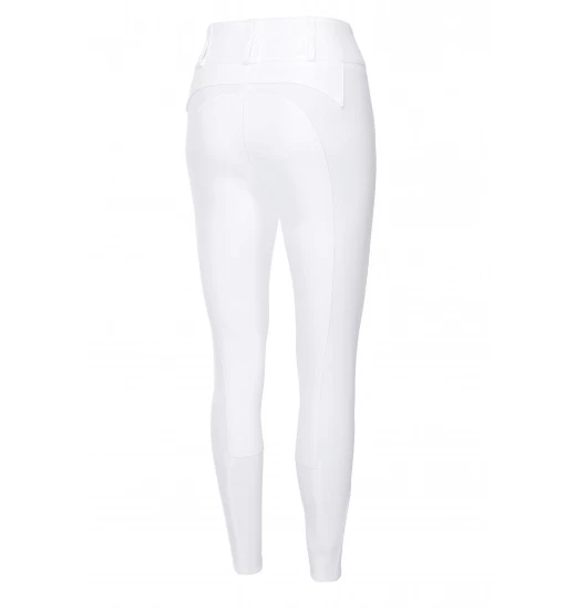 Exceptionally elegant breeches with full seat. They are eye-catching with trendy high waist, fastened with three buttons and a zipper. These breeches are made of the highest-quality elastic fabric that stretches in all four ways. Breathable and comfortable. Their legs have elastic inserts at the bottom. The breeches are decorated with a small Pikeur inscription. Available in white – they will be perfect for competitions.