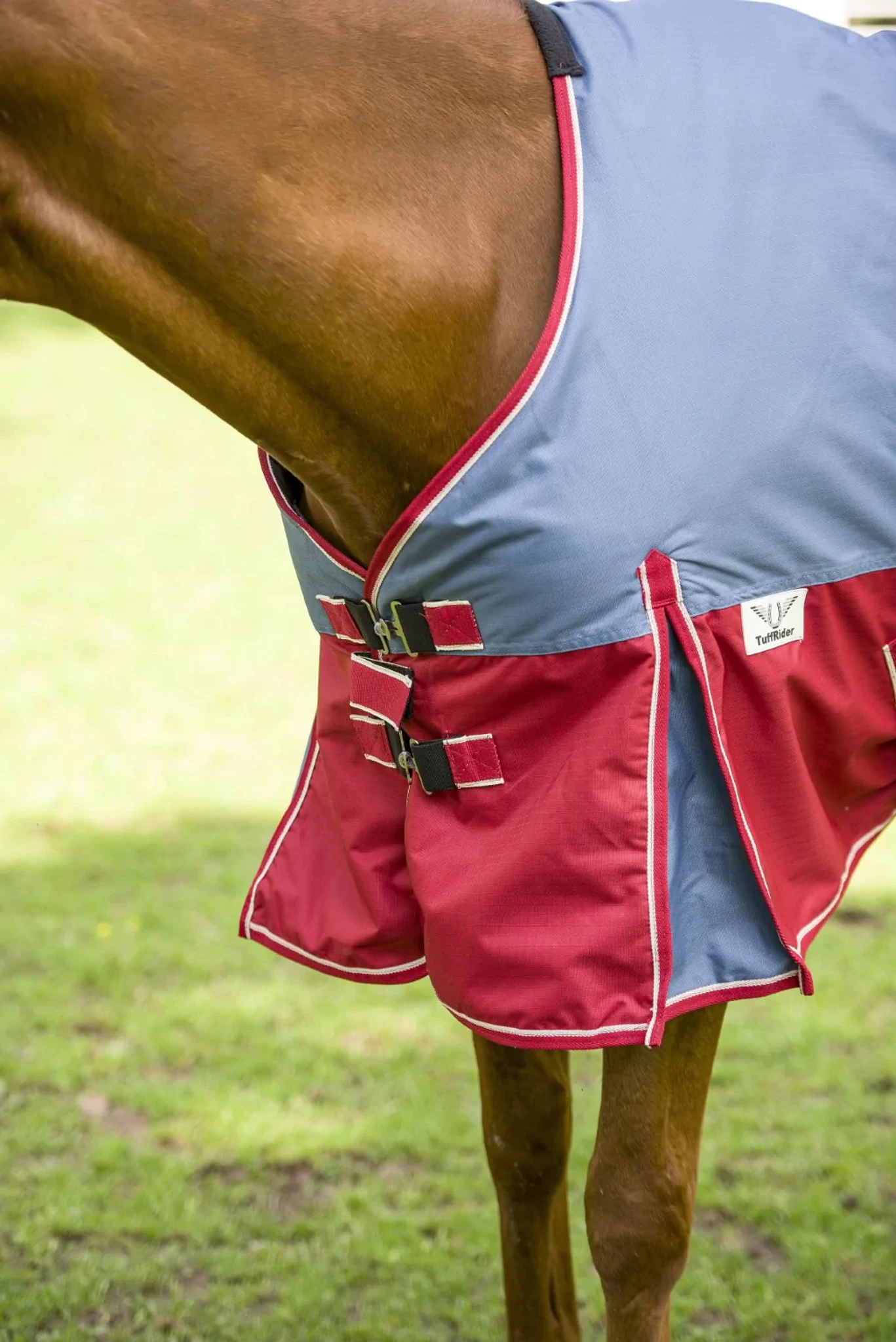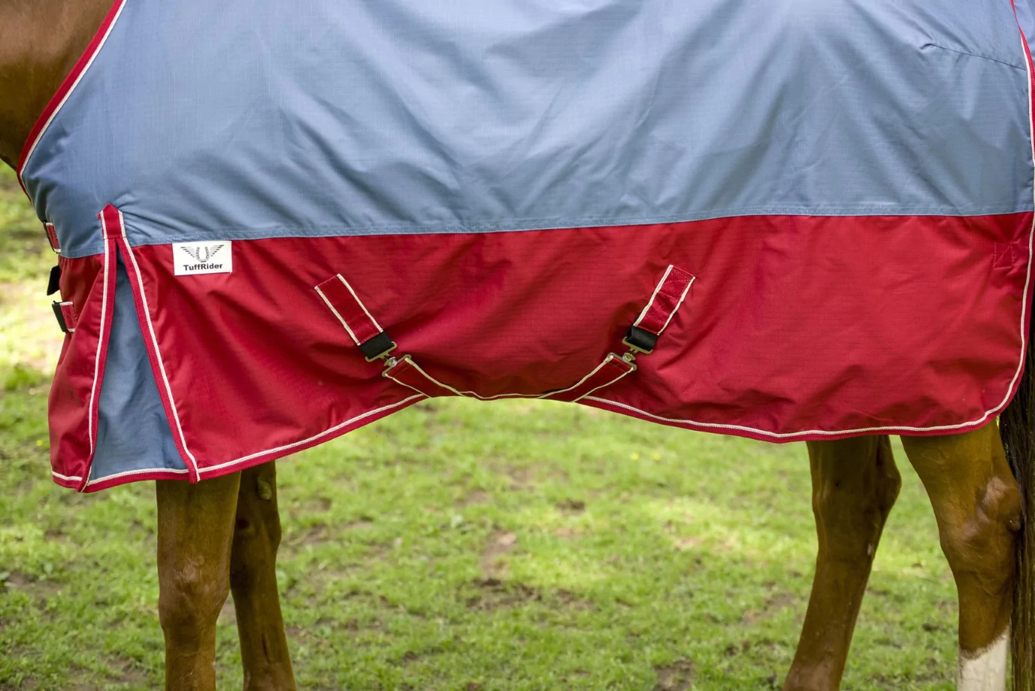 The TuffRider Bonum 600D Rip Stop Turnout Blanket features a polyester lining provides a barrier to prevent rubbing at the chest and shoulders while soft padding at the top provides comfort at the withers. Complete with T-buckles for a secure fit no matter how rough the horse play is and a stretchy shoulder panel for freedom of movement. This medium weight blanket has 220 grams of fill.