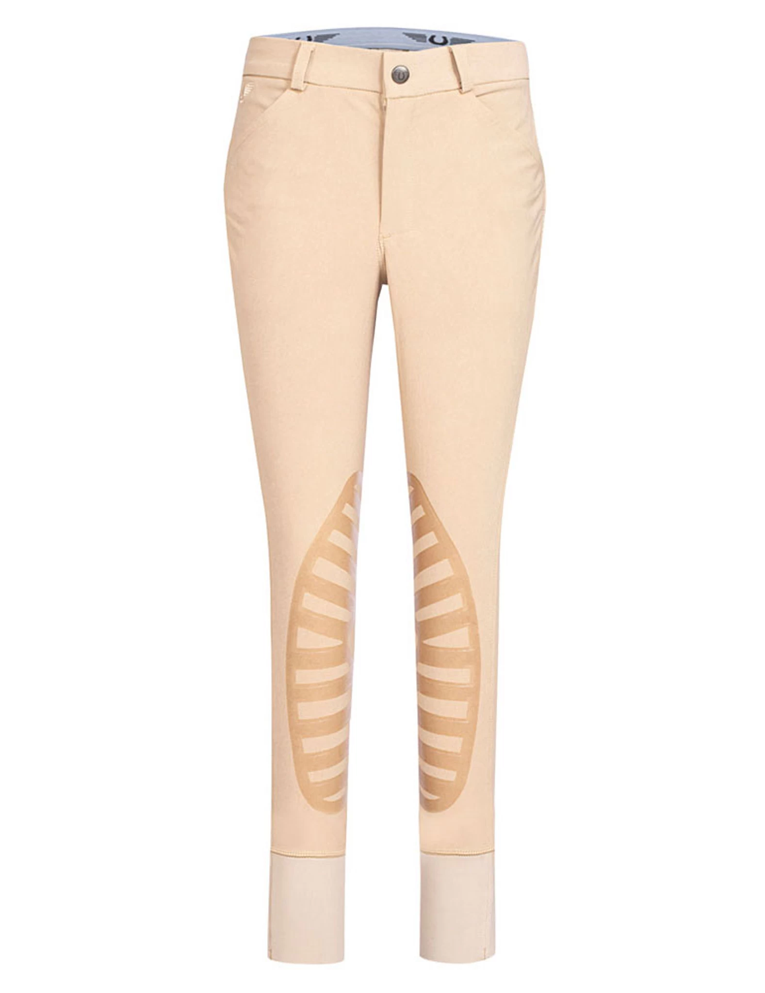 The innovative TuffRider Boys Patrol Silicone Knee Patch Breeches are functional as well as comfortable. Created with a mix of cotton and spandex, these breeches provide a soft feel that’s also easy to move around in. The modern silicone knee patches, a new addition to TuffRider boys’ breeches, provide a firm grip in the saddle to enhance performance. Other up-to-date features include the contoured sock bottoms that offer seamless comfort underneath boots and half chaps. The Patrol for boys will be the go-to breeches for your young rider and will prove to be durable and comfortable.