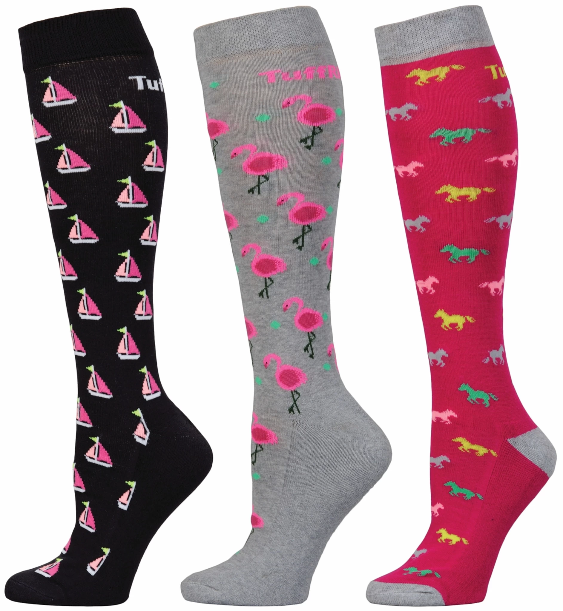 Add some fun and color to your day with this bright 3 pack! These fashionable equestrian boot socks are made with a blend of bamboo, cotton, and nylon, for ultimate support, comfort, and durability. Featuring a cushioned sole, reinforced toe and heel.