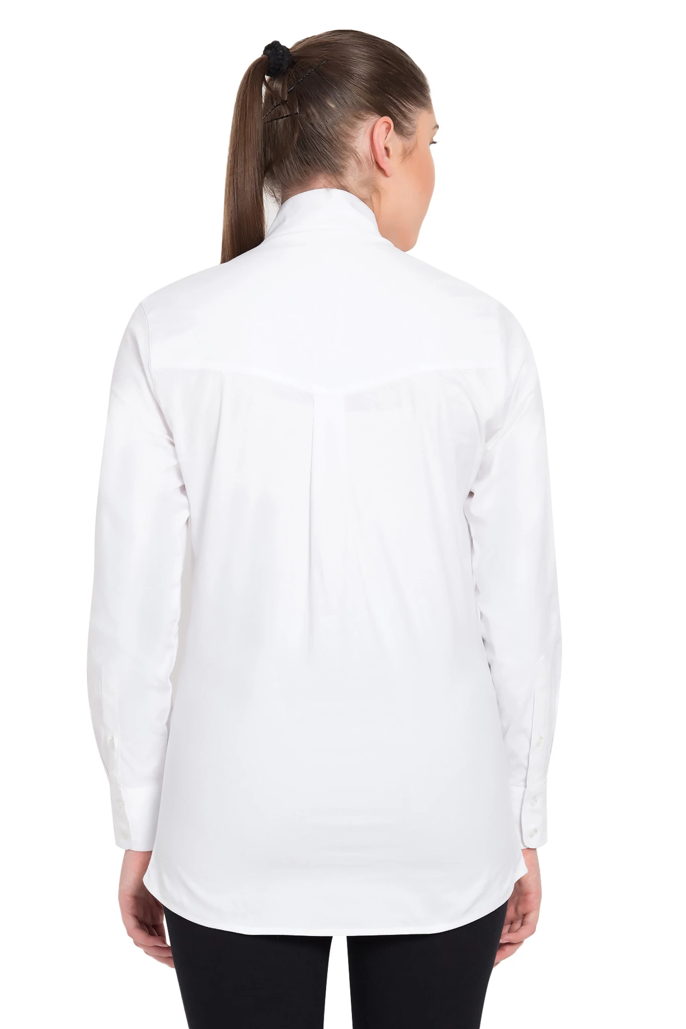 The TuffRider Ladies Starter Short Sleeve Show Shirt is an essential piece for your horse show wardrobe. This competition shirt from TuffRider is created with a comfortable cotton/polyester blend. The traditional button-up front and snapback collar will look great under your show coat. Another nice feature is the wrinkle resistant fabric.