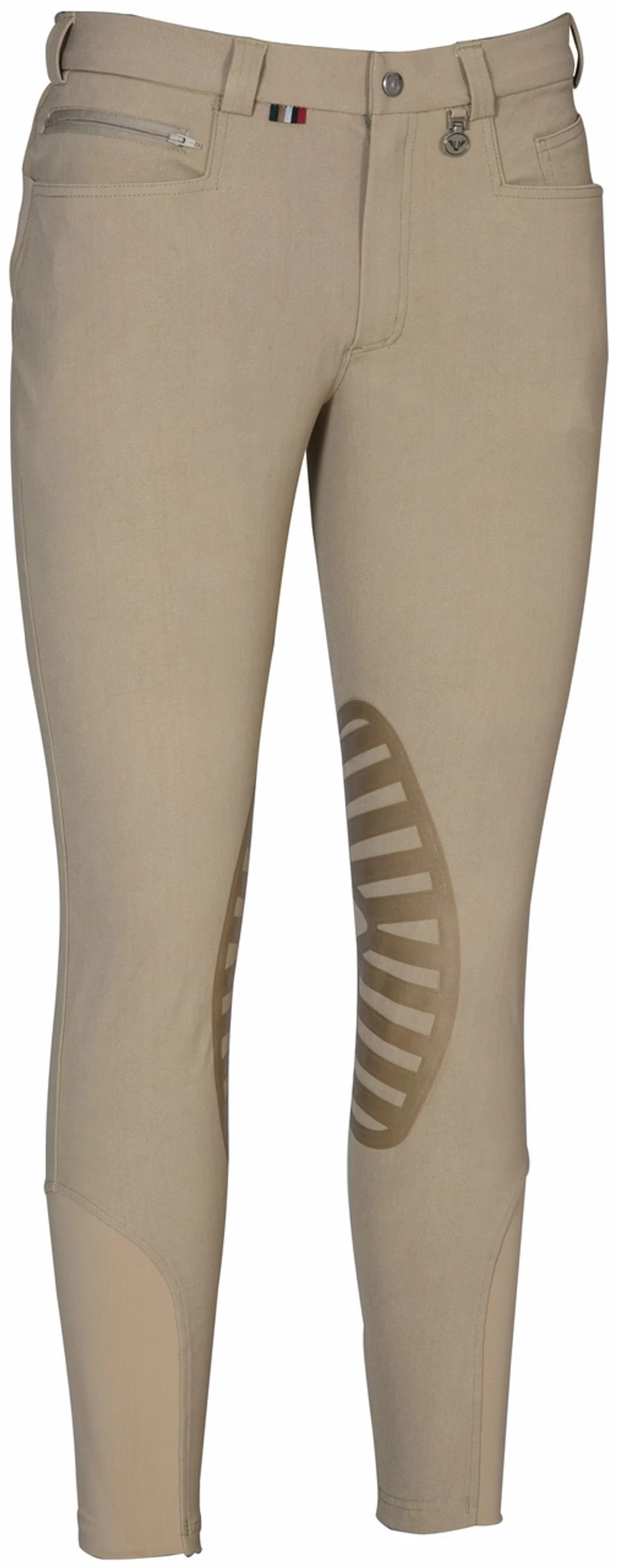 TuffRider Men’s Sawyer Silicone Knee Patch Breeches are ideal for schooling and shows. The Sawyer breeches are crafted with a simple design and are made from a comfortable fabric blend of nylon and spandex for all day comfort. The contoured sock bottoms will help to keep your breeches secure in your boots. We have also added silicone knee patches to help prevent slipping in the saddle to aid in a safer ride.