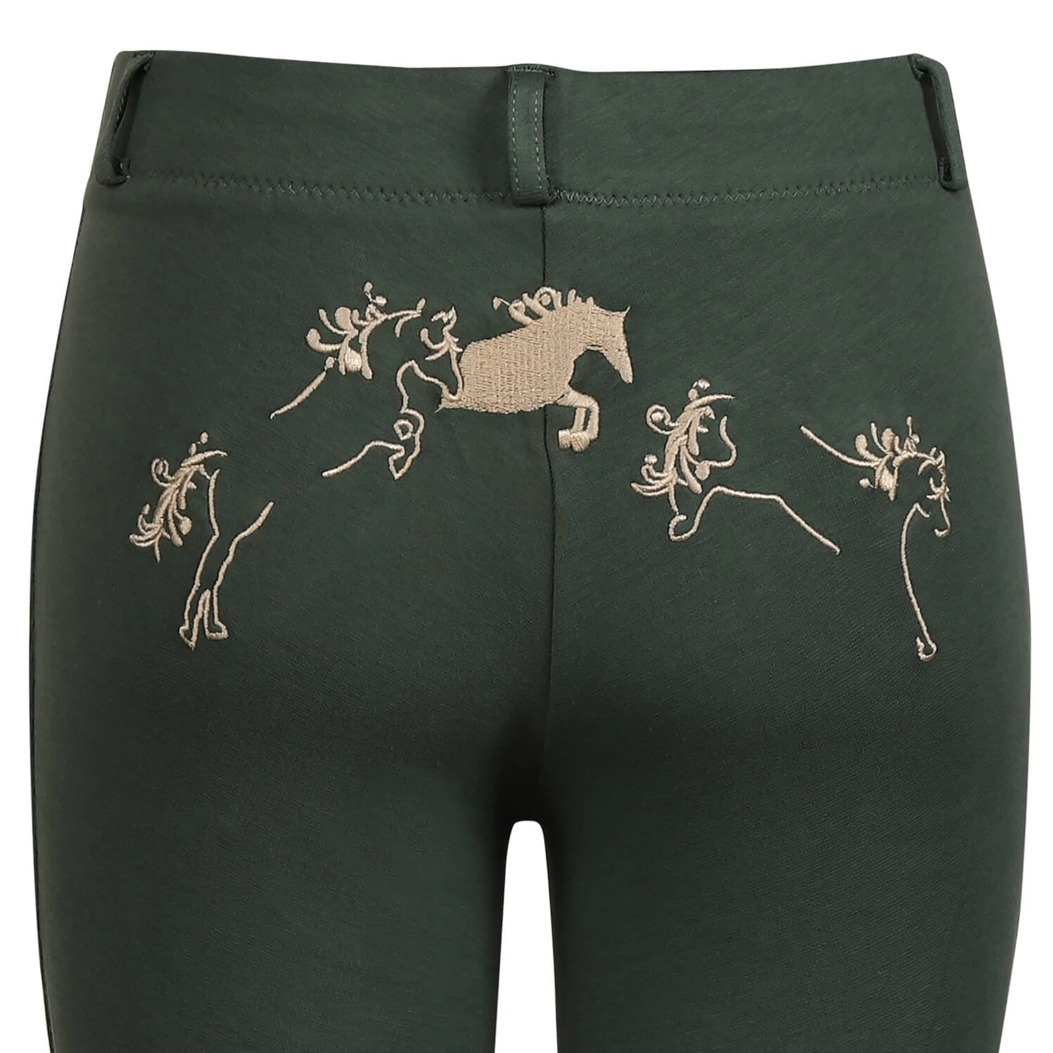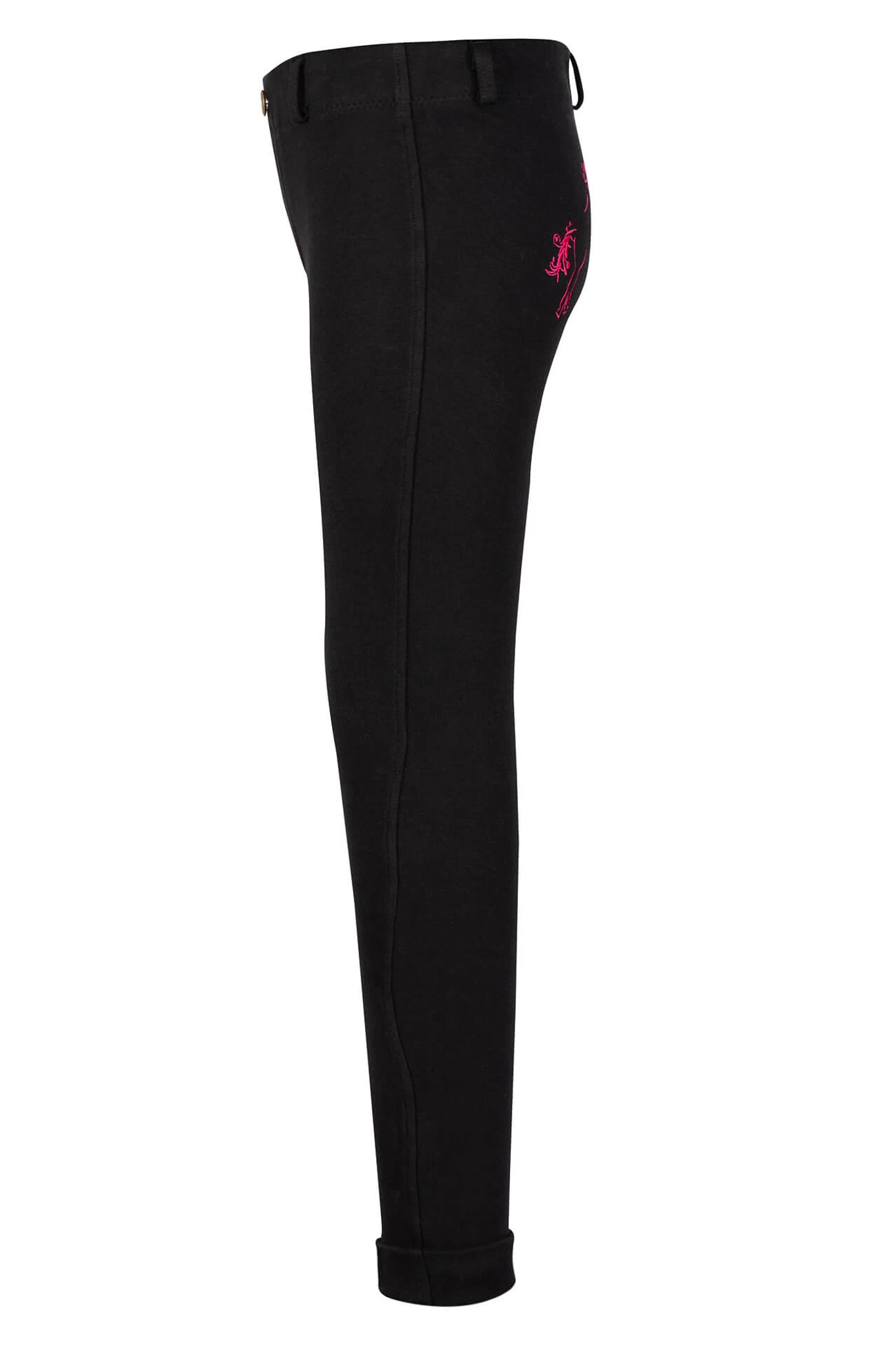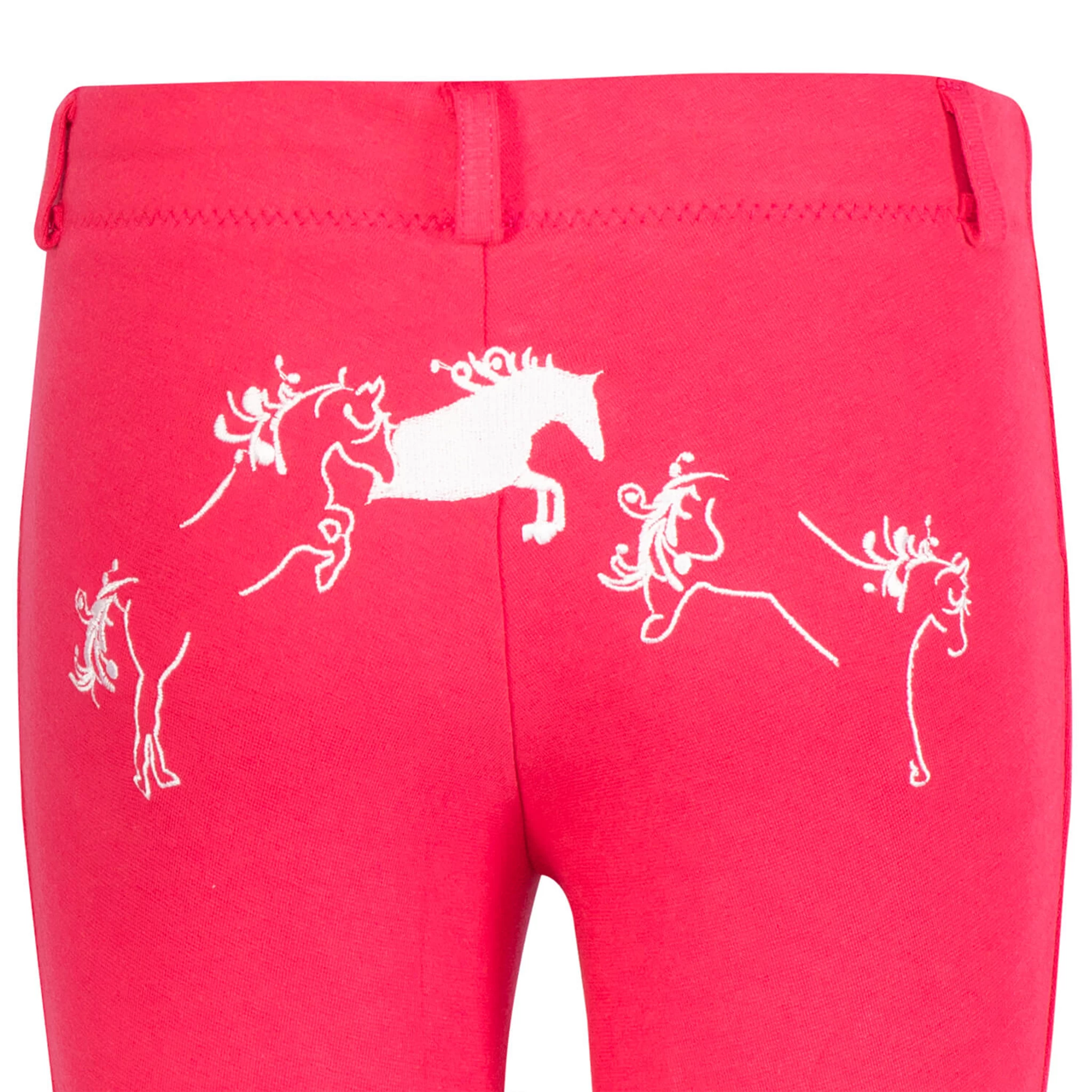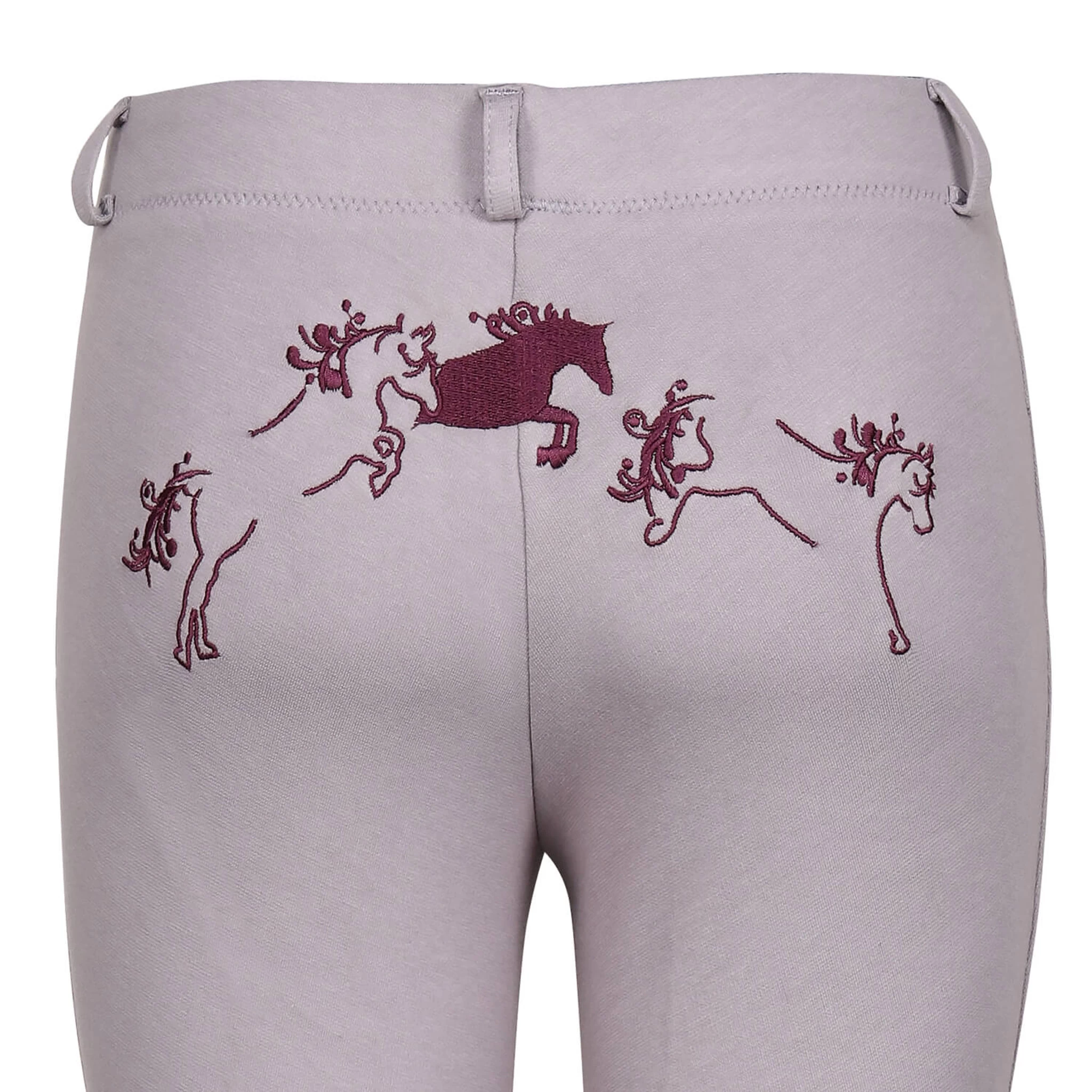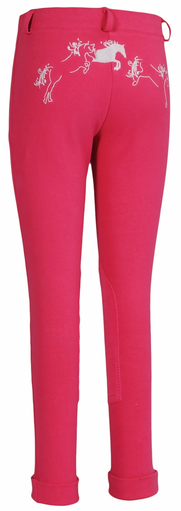 Sure to be a favorite, TuffRider’s Whimsical Jodhpurs feature fun, jumping horse embroidery across the back. These lowrise, pull-on jods include a faux fly front, belt loops, and UltraGripp knee patches. Ideal for lessons and schooling, these children’s equestrian pants are both stylish and functional, the perfect combination for riding. Match with the TuffRider Whimsical Equicool Long Sleeve Shirt for the perfect gift!